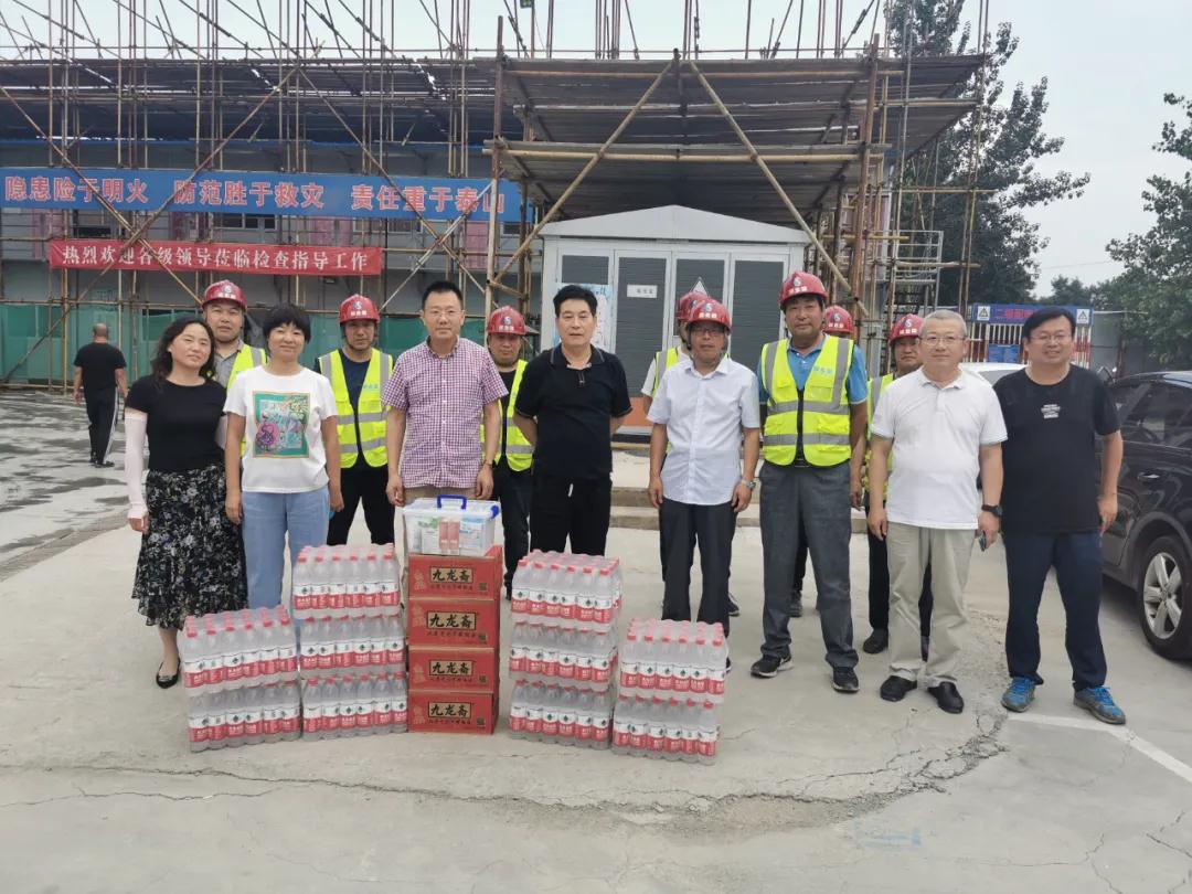 公司領導詳細詢問了解了職工的日常生活、防暑降溫、勞動防護及項目進展等情況,重點檢查了施工現場的安全防護措施以及汛期物資準備情況。黨委書記、董事長劉福海代表公司,對為確保項目質量安全而在烈日酷暑下辛勤勞動的全體人員表示誠摯的感謝,對員工不畏酷暑、堅守崗位的奉獻精神給予充分肯定,并親手將防暑降溫慰問品送到他們手中,囑咐他們注意休息、保重身體,工作中要提高安全意識,遵守安全制度。同時,要求各子企業要把安全生產放在第一位,多措并舉,切實改善一線工人們的勞動條件,保障一線職工的安全健康。