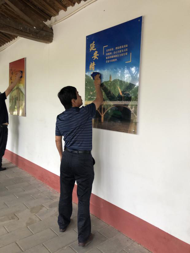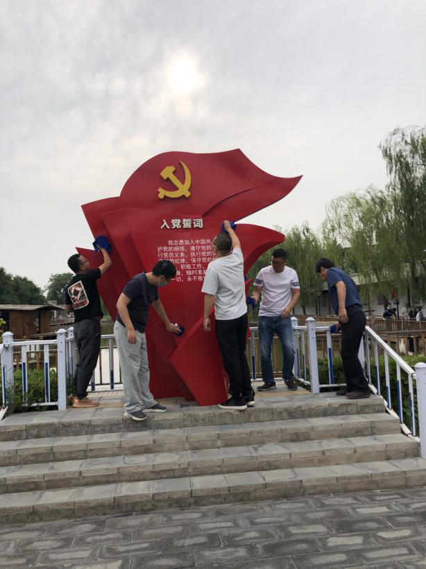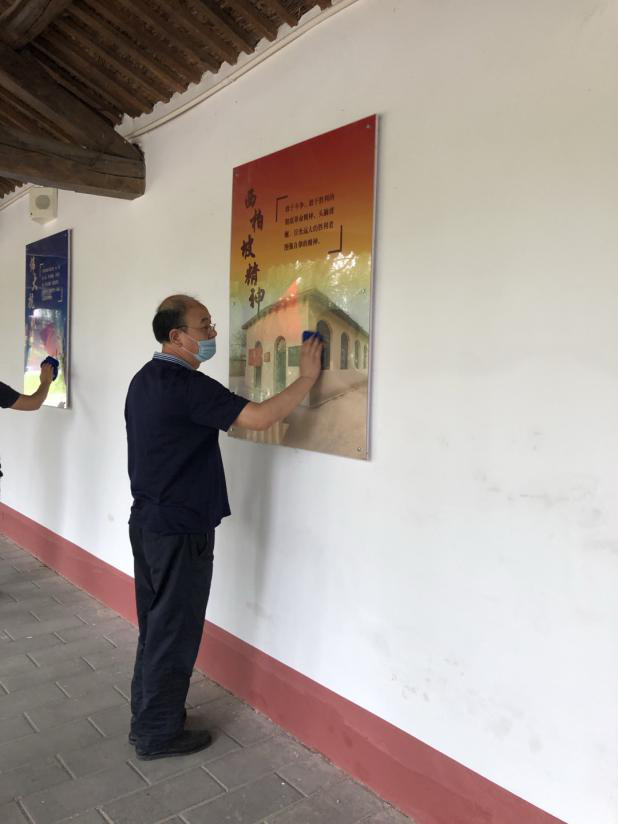 活動中,黨員干部重點擦拭了黨史宣傳板、誓詞臺、路燈桿,清掃了湖邊棧道,撿拾了湖邊白色垃圾。在清掃過程中,同志們精神抖擻,不怕臟不拍累干得熱火朝天。經過清掃的基地煥然一新,環境明顯改善。