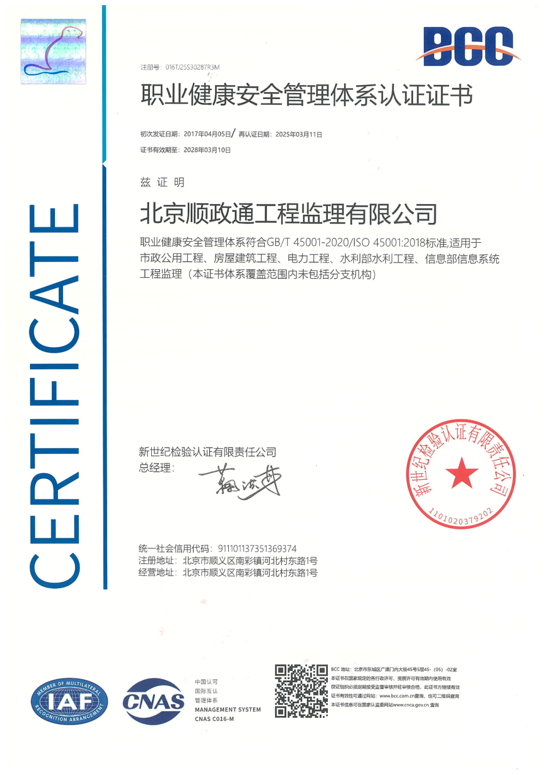 三月初,北京順義建設投資服務有限公司(簡稱:順義建投)下屬順政通公司順利通過新世紀檢驗認證公司專家審核組綜合管理體系再認證審核,取得新版認證證書