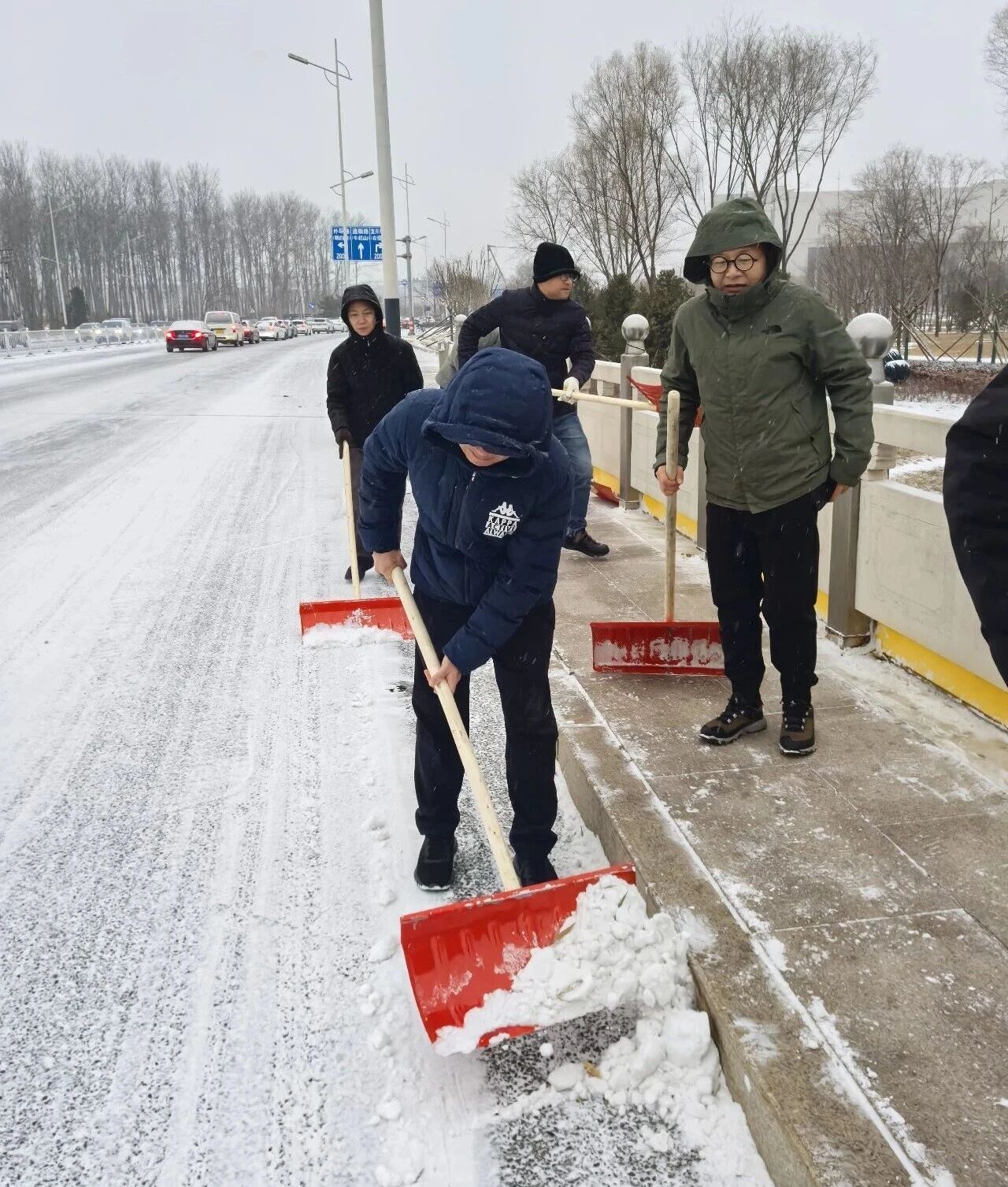 公司提前對各類應急物資進行清點與補充,備齊除雪鏟、鐵鍬、掃帚等工具,確保“拉得出、用得上”。公司掃雪小組奔赴通順路(復興東街—濱河北路)責任路段,將掃雪范圍向公共區域延伸,實行“隨下隨掃”,在降雪期間確保一條寬度不少于1米的行人通道,完成責任道路清掃后,掃雪小組繼續清掃自身區域和門前三包區域。經過數小時的"浴'雪'奮戰",積雪清理完畢,實現了“雪停路凈”的目標,以實際行動踐行國企擔當。