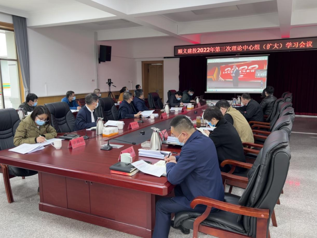 3月30日,順義建投召開理論中心組學習擴大會議,科級以上干部參加,專題學習“2022年全國兩會”精神,黨委副書記胡代安同志主持。